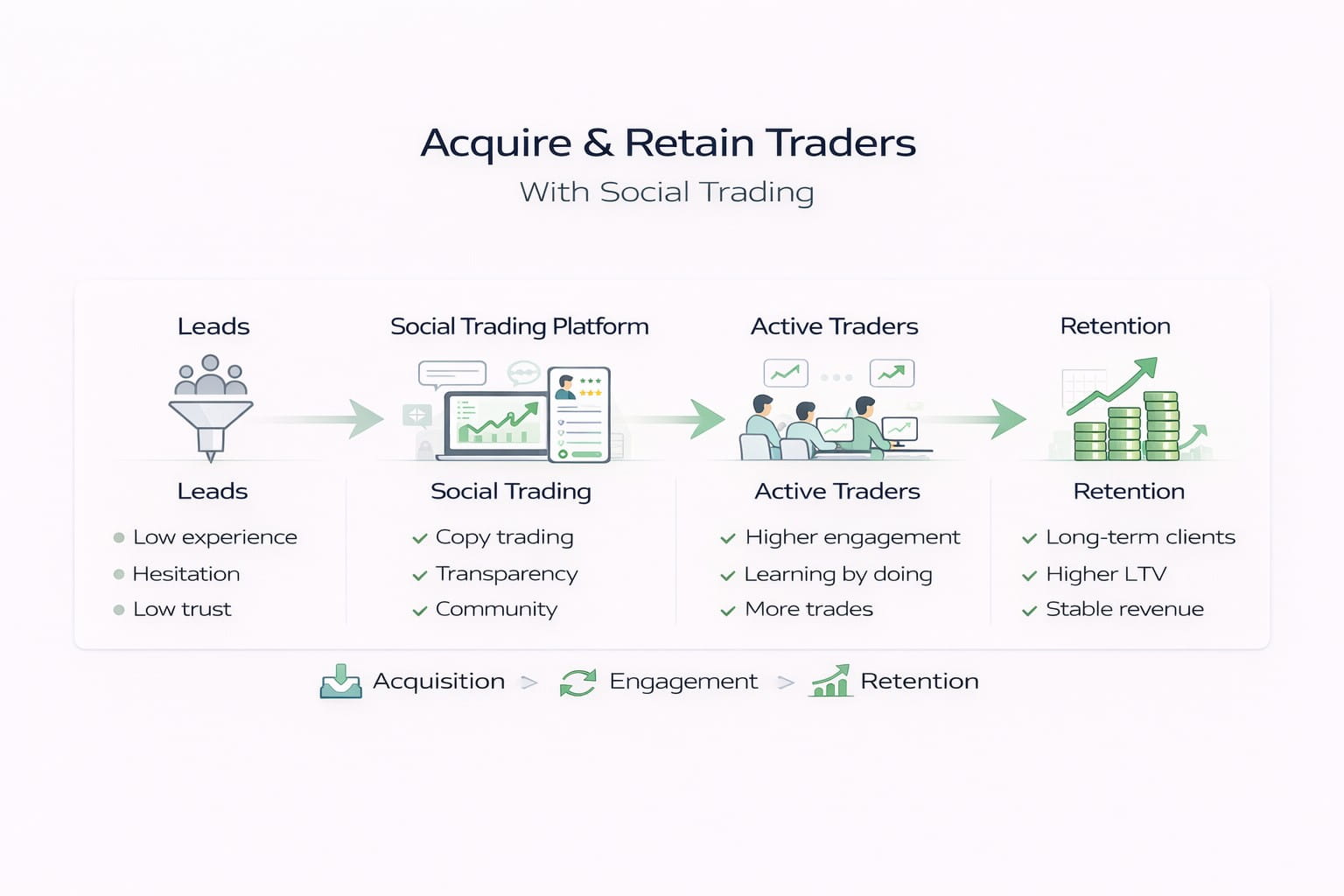 Social trading helps brokers acquire and retain clients by solving common objections like lack of education and trust. It empowers new traders, retains experienced ones, and opens new revenue channels, while improving transparency and compliance. If your sales team is struggling to convert traders who claim they’re “not educated enough” or “don’t know how to...